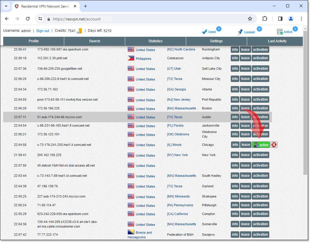 How to work with the system using ResVPN Client?2) You willsee a currentONLINE list of VPNs available for connection at the moment. Select any VPN from the list that matches your request criteria and activate it. ![]() 3) Install 4) Log in to your account on ![]() 5) You canactivate several VPNs in parallel,its free!. But we do not recommend doing more than 5. Select a bot and connect to it. When you click "Connect",the credit will be charged. By default the connection will be backconnect. But the 6) After successful connection, you will see a Tray notification. ![]() 7) Your connection is established. Check what you look like on the outside. For example onwhoer.netor any other site you like. ![]() ***WireGuard is a registered trademark, and it belongs toJason A. Donenfeld. |